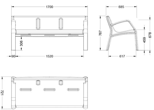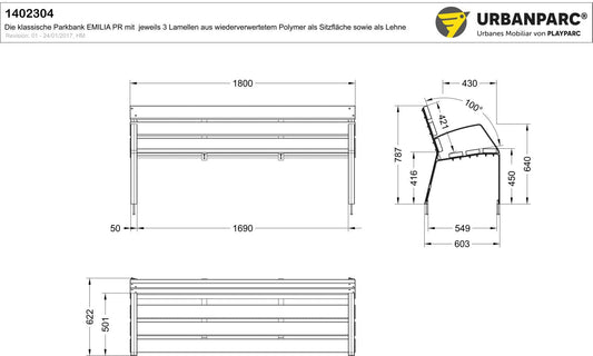 Langlebige und moderne Parkbänke aus Kunststoff für den öffentlichen Raum.
