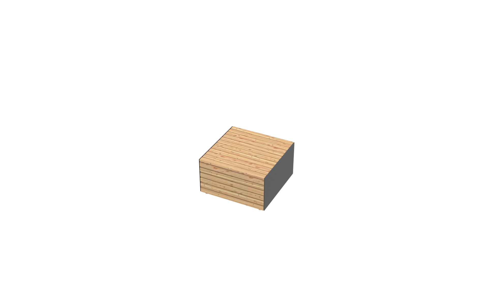 Dank der hohen Modularität ist das System besonders planungsfreundlich. Der Aufwand bleibt gering, die gestalterischen Möglichkeiten groß. Ob als Pilotprojekt oder als großflächiges Gestaltungskonzept – die Skalierbarkeit macht den Einsatz einfach und effizient. Natürlich robust Für die Konstruktion setzen wir auf eine ehrliche Kombination aus langlebigen Materialien: Lärchenholz und duplex-beschichteter Stahl. Das Holz sorgt für Wärme und Aufenthaltsqualität, der Stahl für Stabilität und eine moderne Optik. Zusammen ergeben sie ein Möbelprogramm, das ebenso einladend wie widerstandsfähig ist – ideal für den dauerhaften Einsatz im Außenraum.